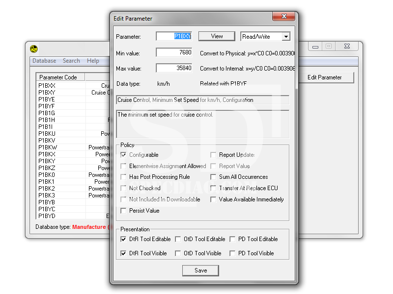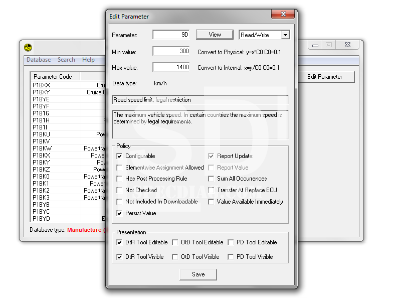 • Change minimum/maximum values of parameters, for example: speed limit;