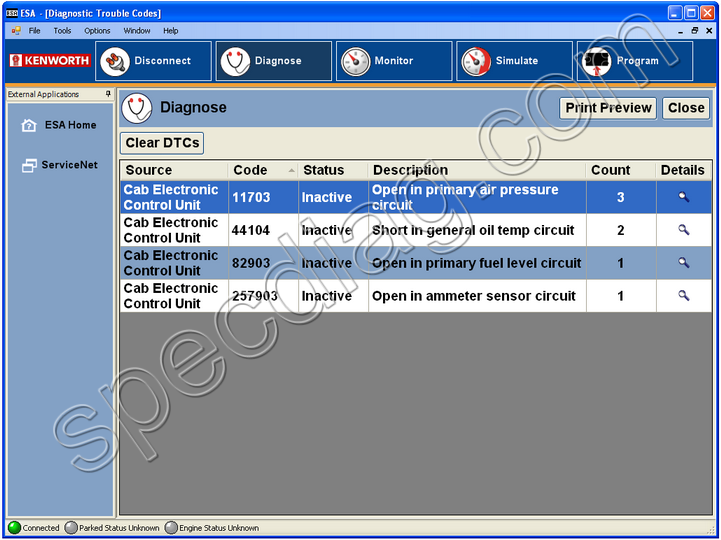 Electronic Service Analyst is a diagnostic tool what communicates over a Data Link Adapter to the NAMUX components. Can connect to Kenworth, Peterbilt and other trucks with Paccar engines.