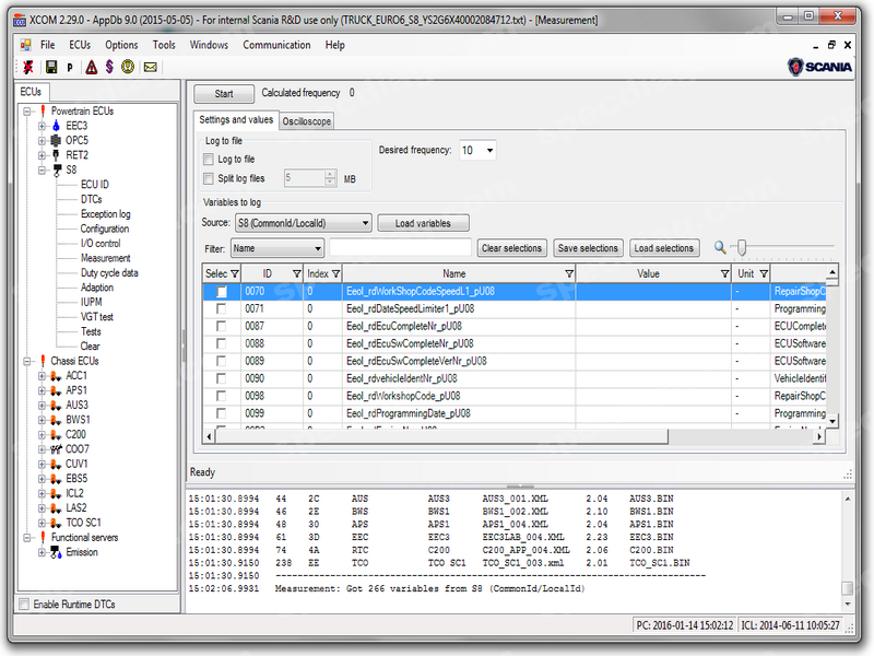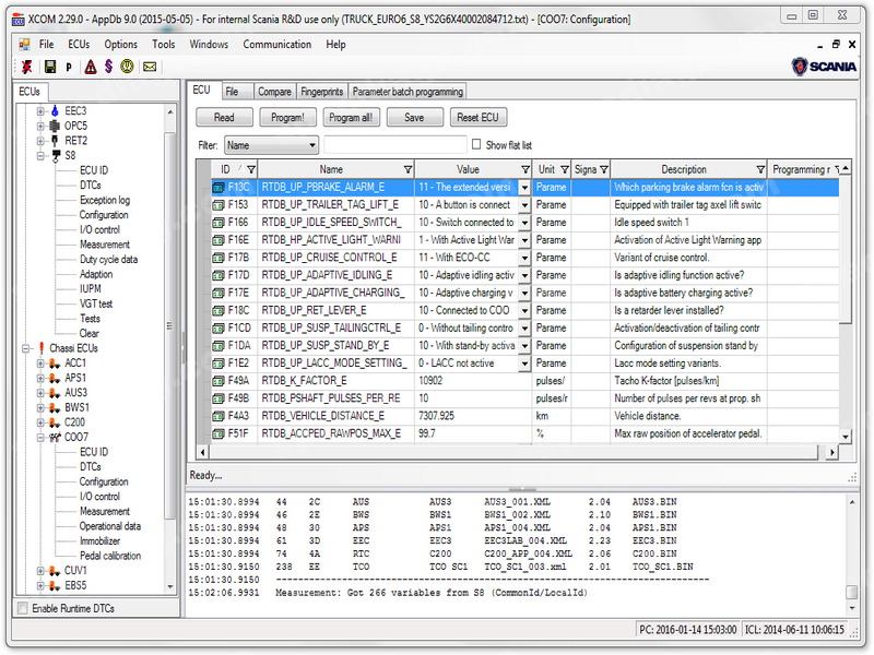 Scania XCOM - is a diagnostic tool to read, save and modify ECU data such as trouble codes, parameters, statistic data etc. VCI2/VCI3 interface is used to connect to ECU via CAN protocol.
