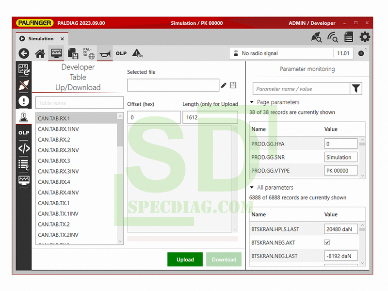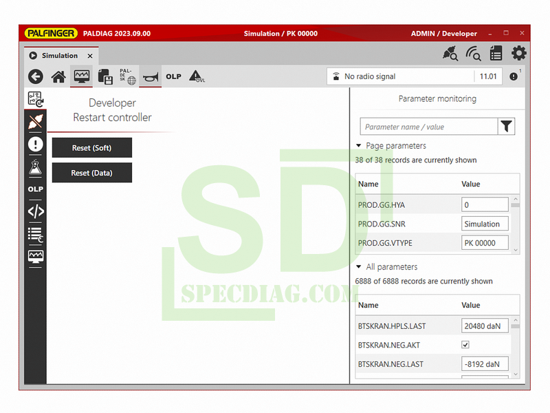 PALDIAG - configure the settings that will enable you to work best – such as configuration of stability (e.g. ISC, HPSC-Plus LOAD), assistance (e.g. P-Fold) and comfort systems (e.g. AOS, SRC, RTC, Soft Stop, …), definition of load limits and restriction areas, assignment of levers and functions, speed settings, calibration of sensors and telematics module, retrofitting of functions, etc.